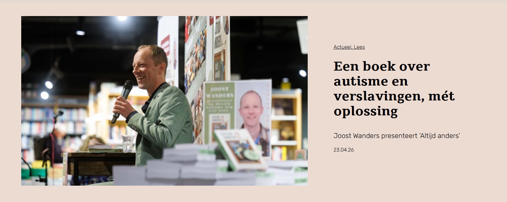Joost Wanders is HAN-projectondersteuner en, naast zijn werk, autisme-ambassadeur. Op Wereld Autisme Dag presenteerde hij zijn boek Altijd anders in de Nijmeegse boekhandel Dekker van de Vegt, waarin hij zijn verhaal en strijd deelt. “Ik heb de gedrukte versie van mijn boek zelf ook nog niet gezien.”